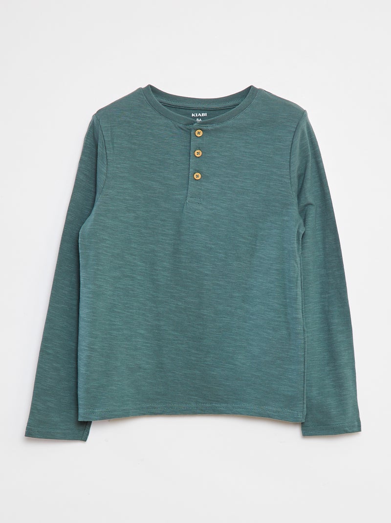 T-shirt à manches longues et col tunisien - Vert