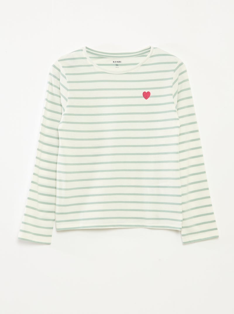 T-shirt à rayures à manches longues et col rond - Vert