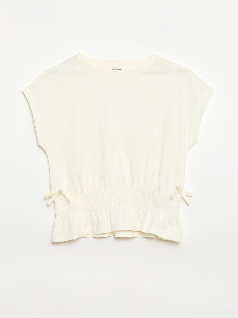 T-shirt avec empiècement smocks et nœuds à la taille - Ecru