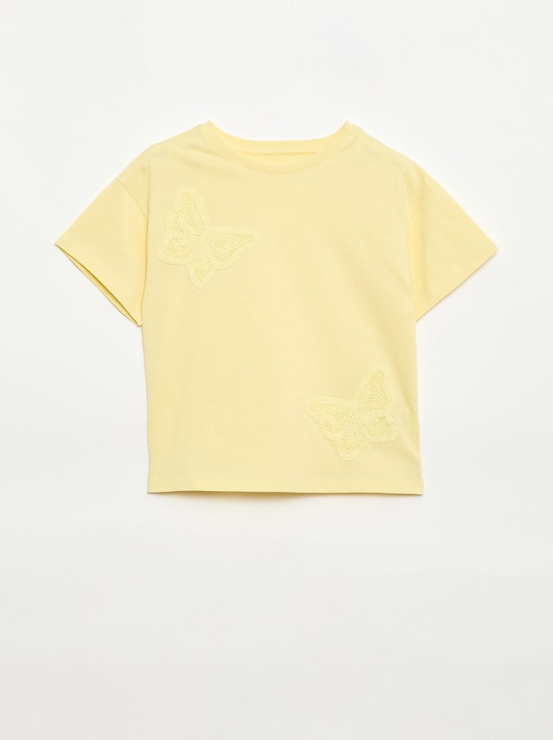 T-shirt avec fleurs en macramé - Jaune