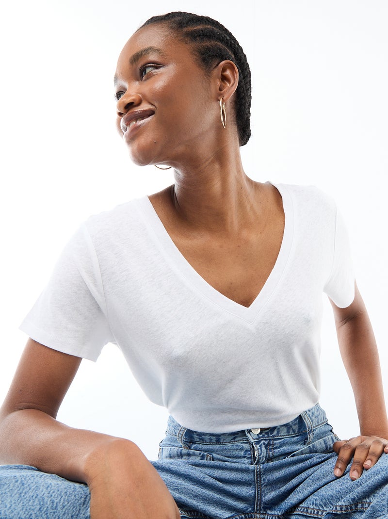 T-shirt basique à manches courtes col V - Blanc