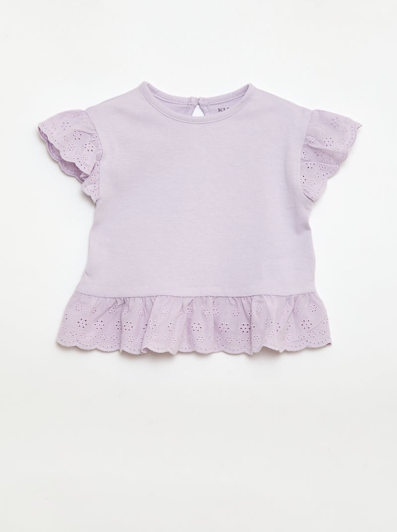 T-shirt broderie anglaise en jersey coton uni - Rose