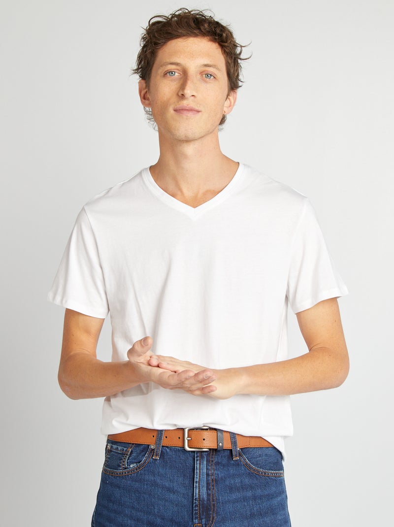 T-shirt col V - Blanc
