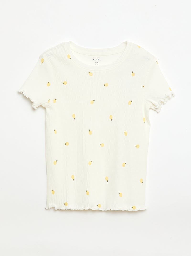 T-shirt côtelé à manches courtes volantées - Blanc