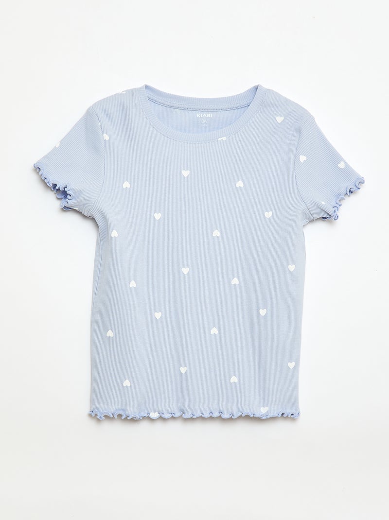 T-shirt côtelé à manches courtes volantées - Bleu