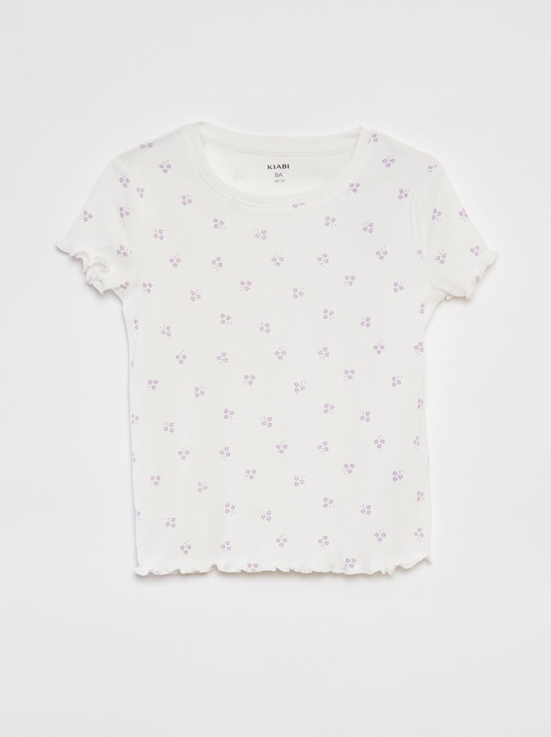 T-shirt côtelé avec bords ondulés et motifs - BLANC