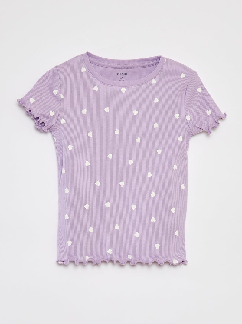 T-shirt côtelé avec bords ondulés et motifs - VIOLET