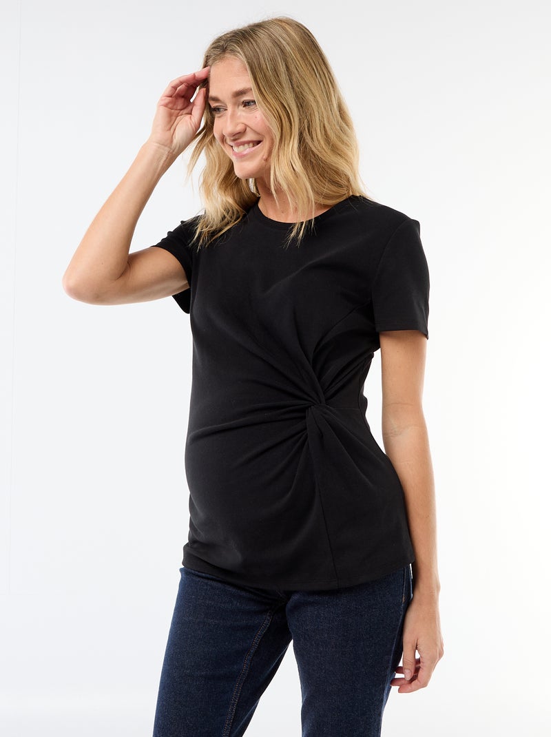 T-shirt de maternité avec col rond drapé - Noir