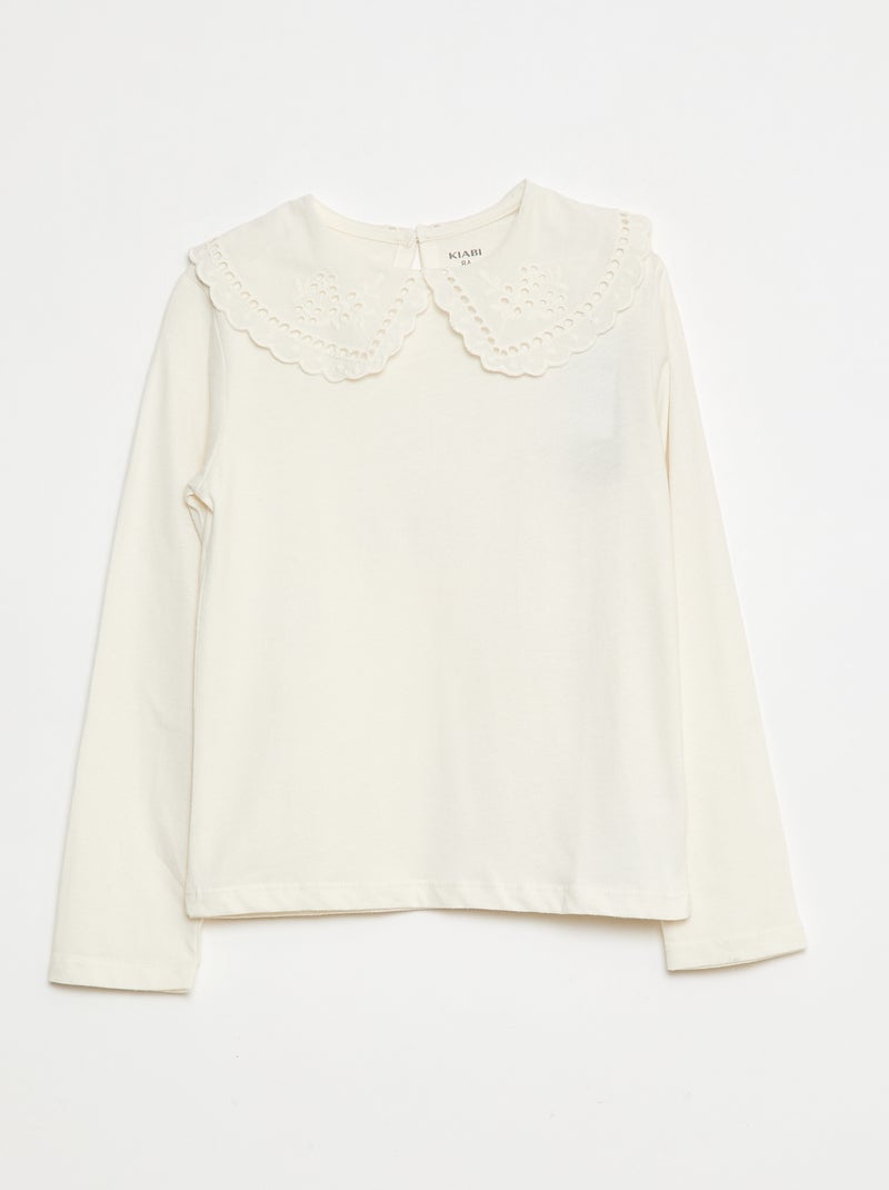 T-shirt en coton avec col brodé - Blanc