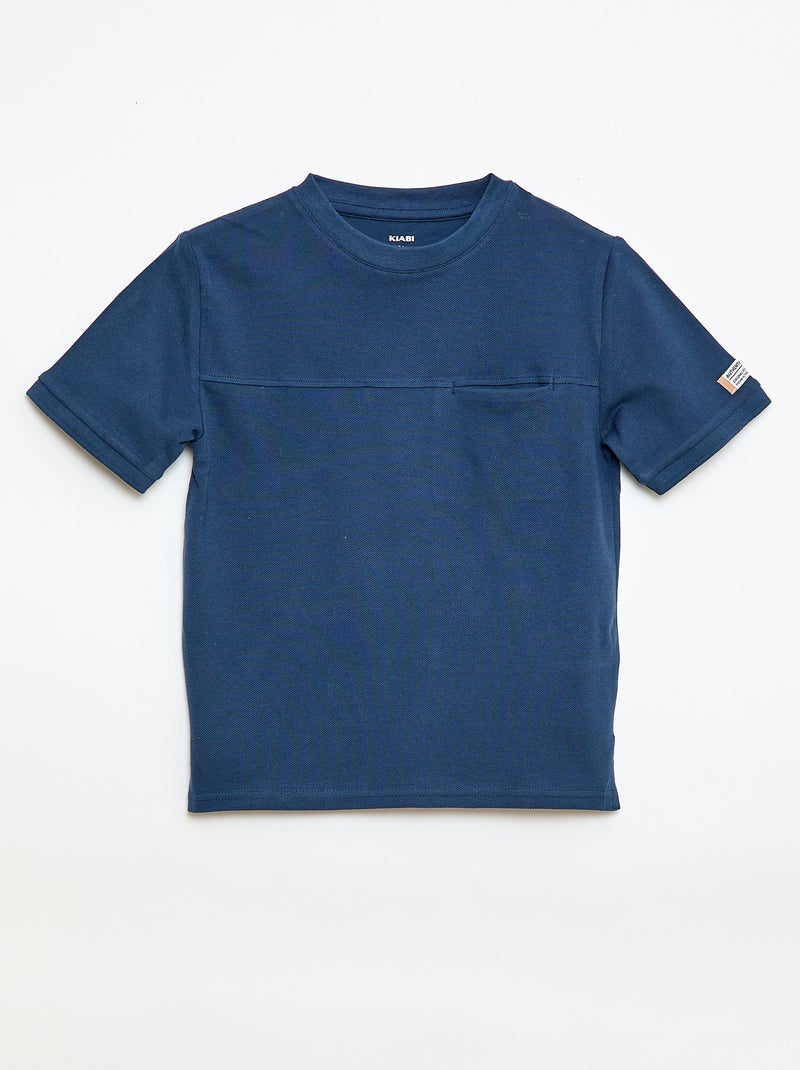 T-shirt en coton piqué à manches courtes - Bleu