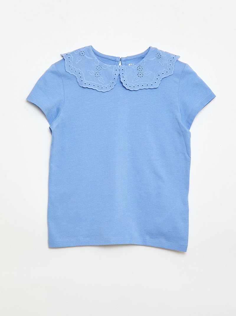 T-shirt en jersey avec col Claudine avec broderies anglaises - Bleu