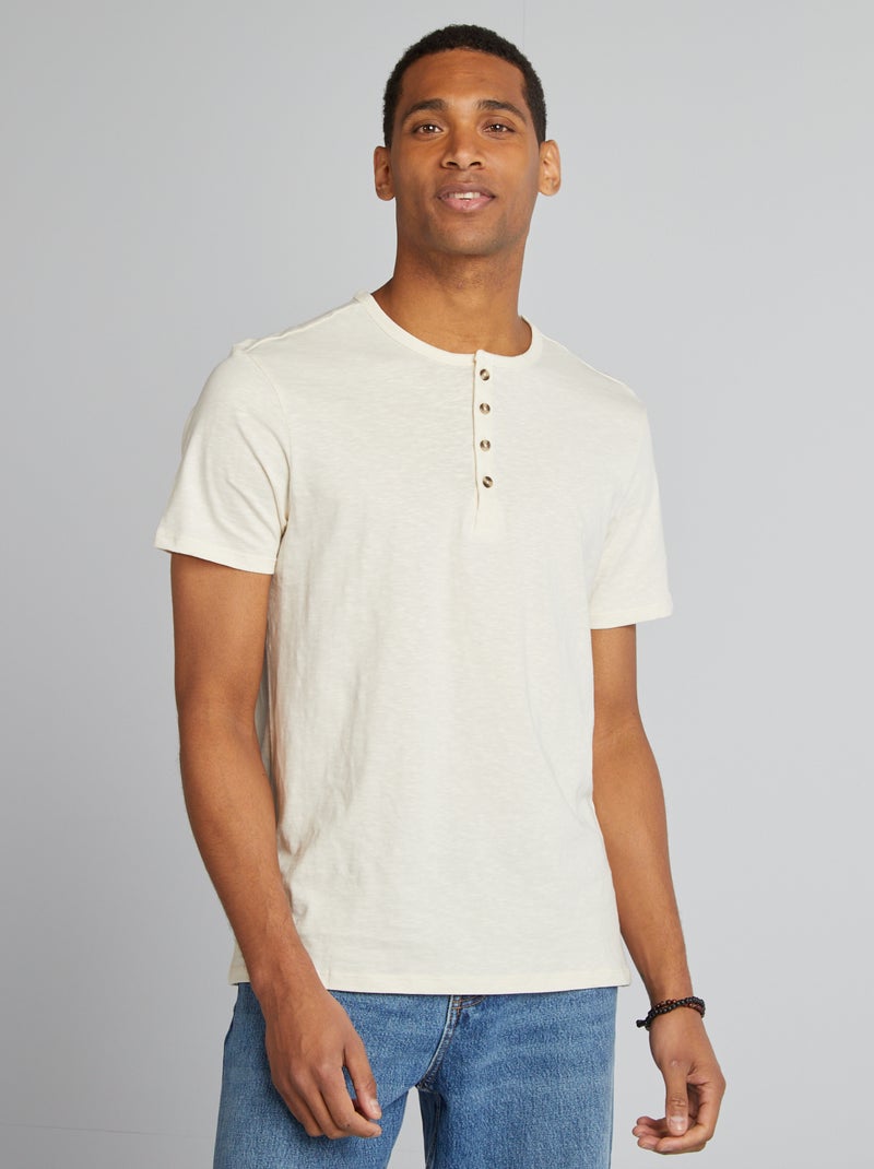 T-shirt en jersey avec col tunisien - Blanc