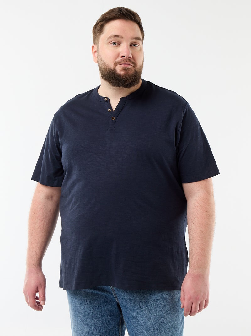 T-shirt en jersey col tunisien et manches courtes - Bleu