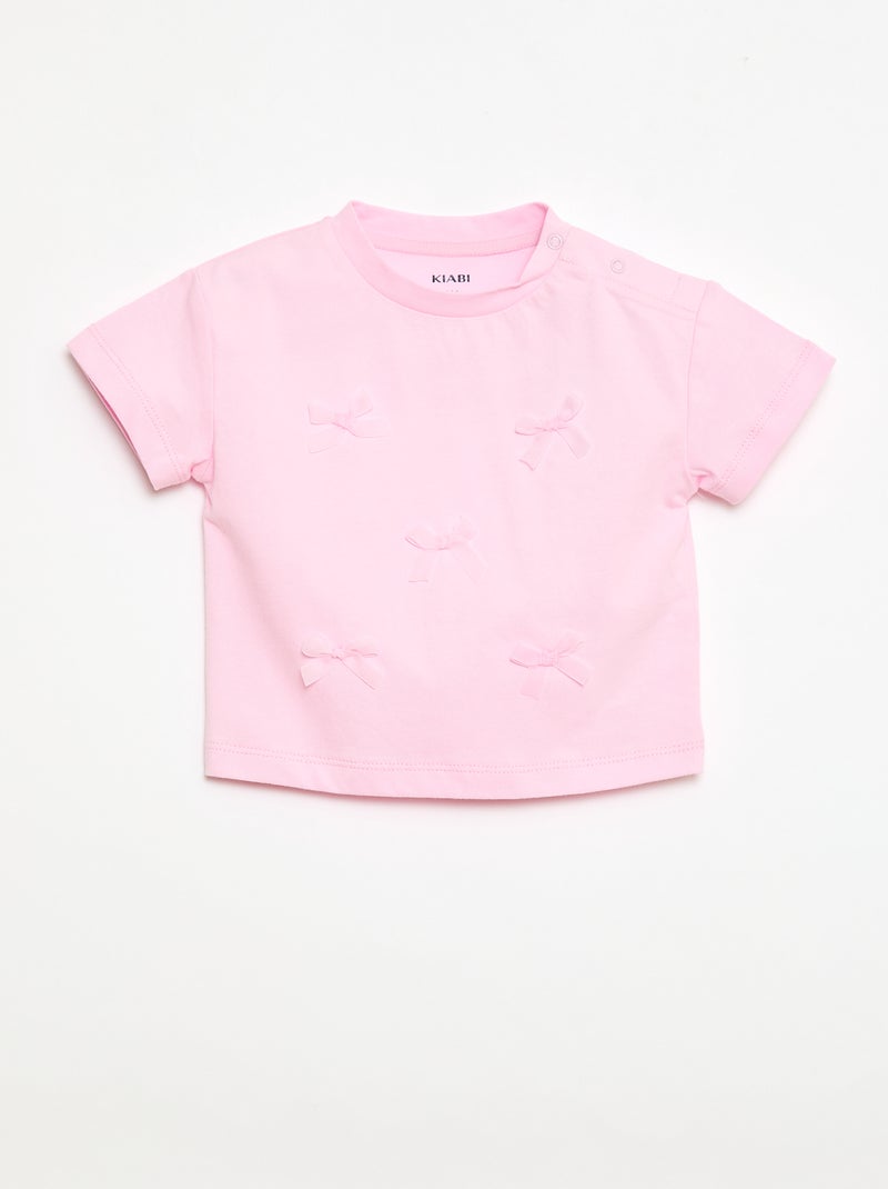 T-shirt en jersey manches courtes avec nœuds fantaisies - Rose