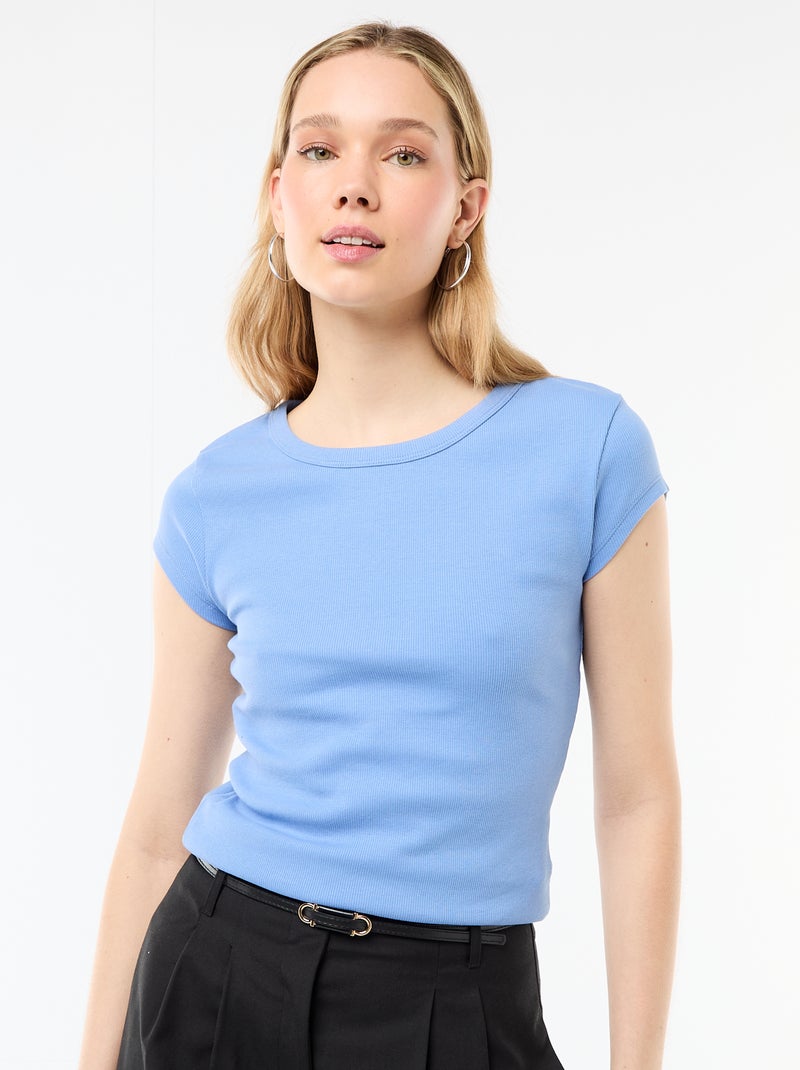 T-shirt en jersey manches courtes côtelé - Bleu