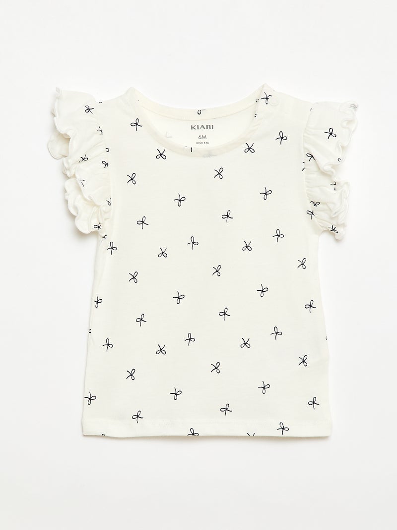 T-shirt en jersey manches courtes volantées - Blanc