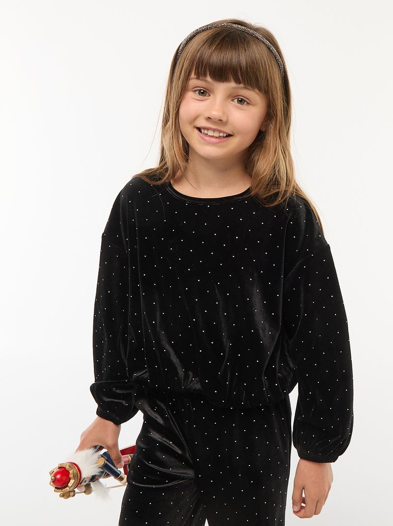 T-shirt en maille doudou avec strass - Noir