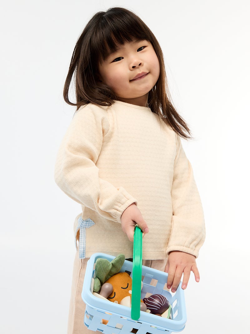 T-shirt en maille rib avec nœuds fantaisie - Beige