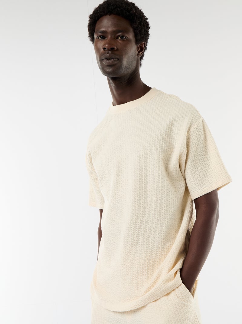 T-shirt imprimé à manches courtes en nid d'abeilles - Blanc