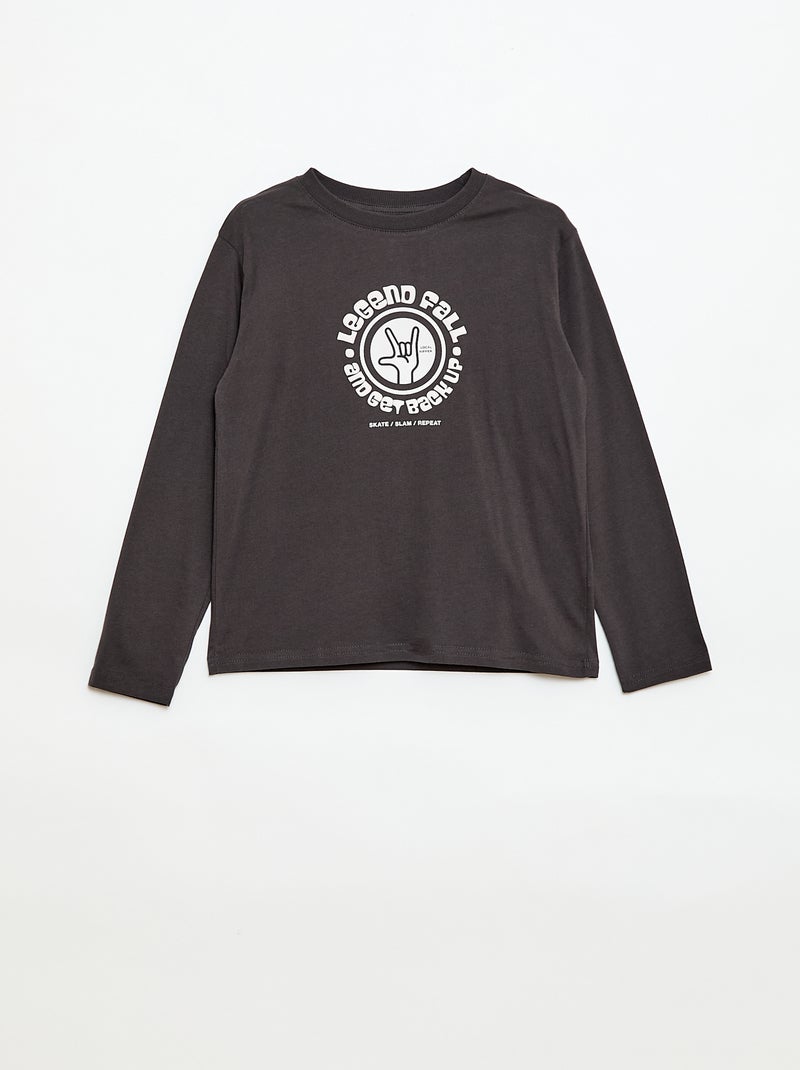 T-shirt imprimé à manches longues - Gris foncé
