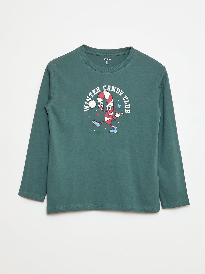 T-shirt imprimé à manches longues - Vert