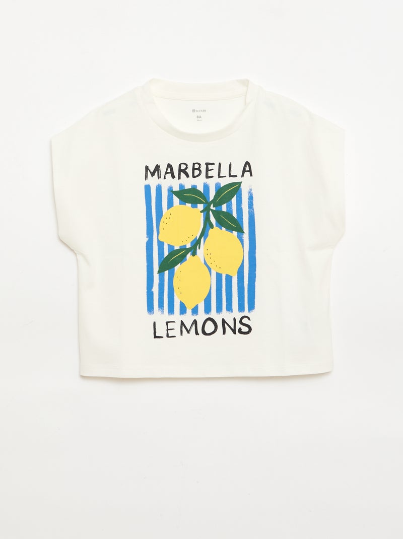 T-shirt imprimé fantaisie à manches courtes - Blanc