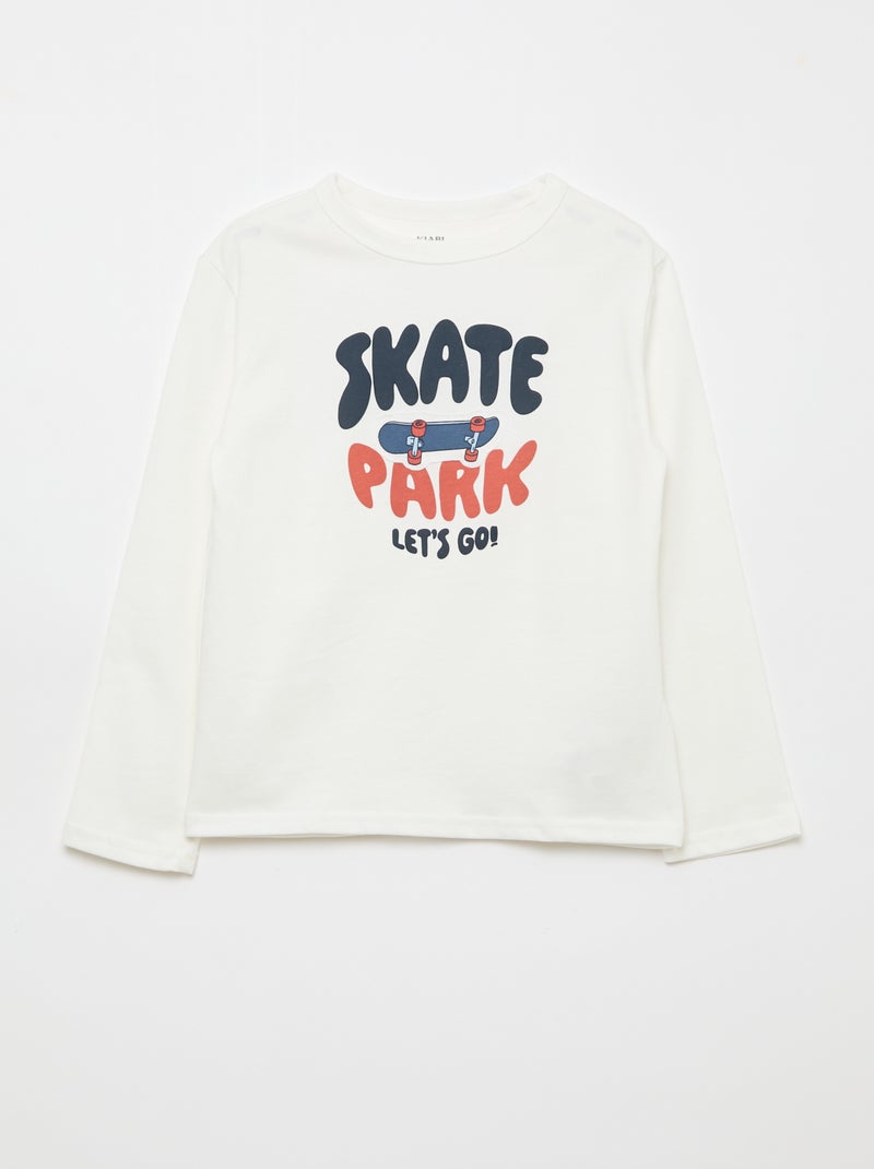 T-shirt imprimé fantaisie à manches longues - Blanc