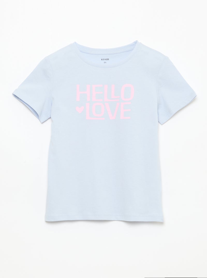 T-shirt imprimé message à manches courtes - Bleu