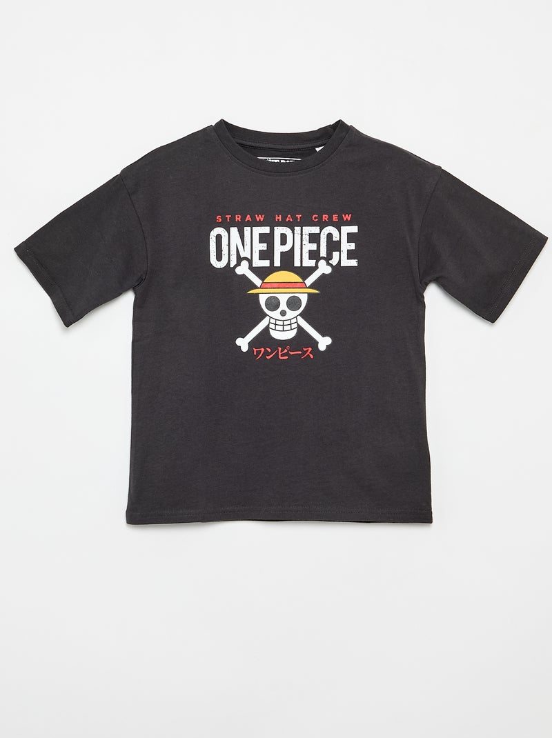T-shirt imprimé 'One piece' manches courtes en coton - Noir