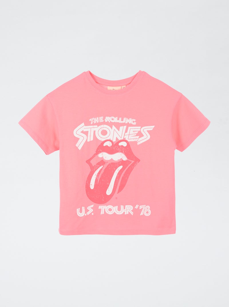T-shirt imprimé 'Rolling stones' en coton - Rose
