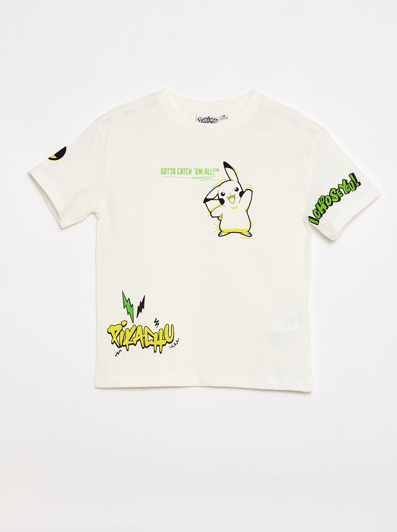 T-shirt maille légère 'Pokémon' en coton - Blanc