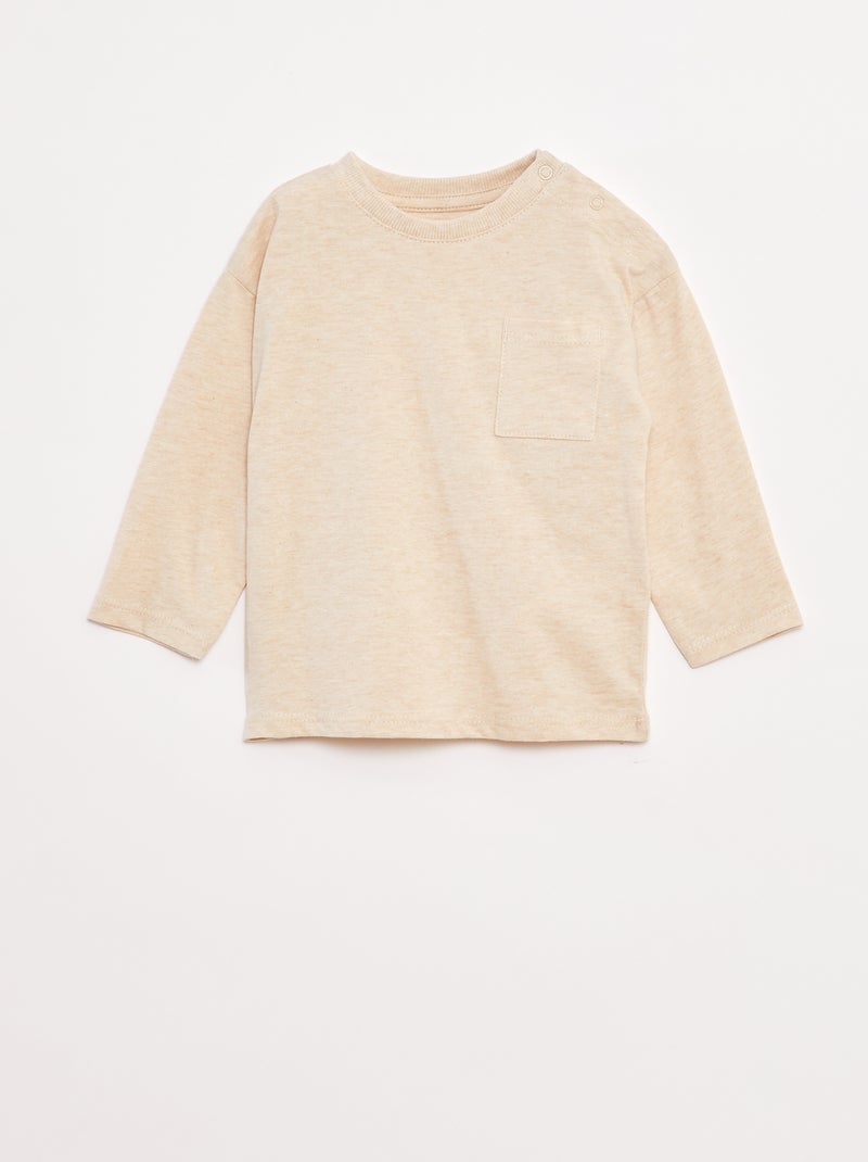 T-shirt manches longues et poche poitrine - Beige