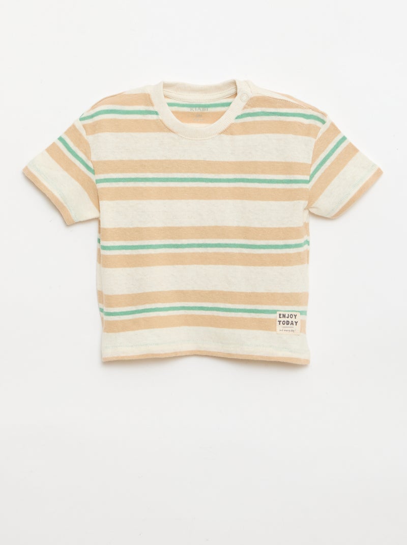T-shirt rayé en jersey coton et lin - Beige