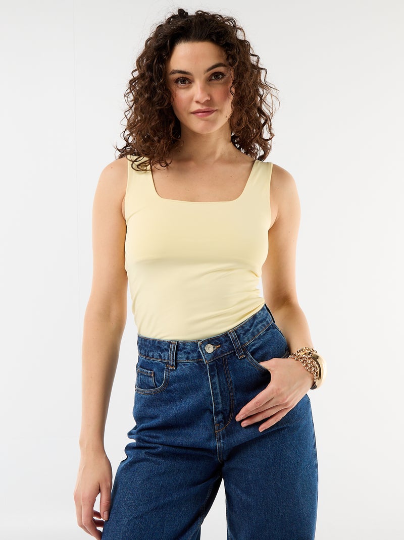 T-shirt stretch à col carré - Jaune