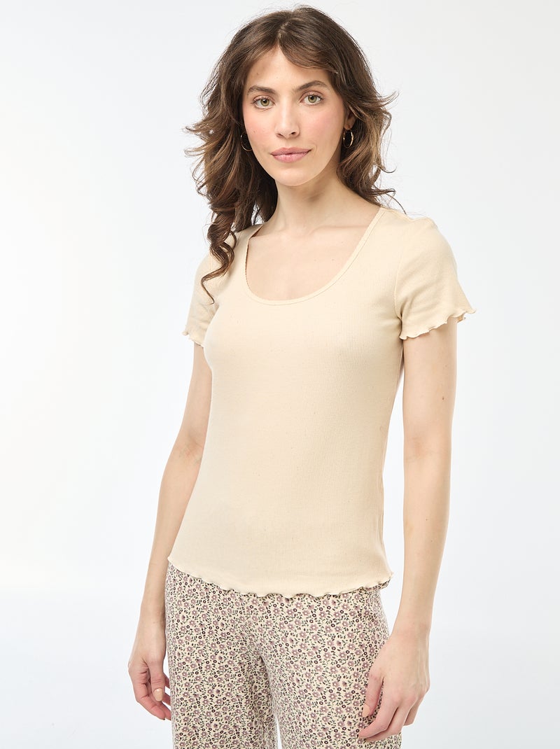 T-shirt uni en maille côtelé manches courtes - Blanc