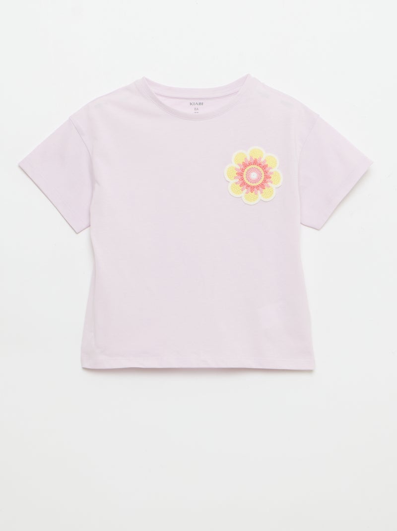 Tee-shirt avec broderie à la poitrine - Violet