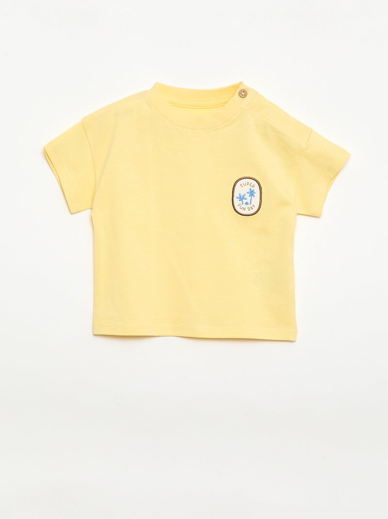 Tee-shirt avec broderie sur poitrine - Jaune