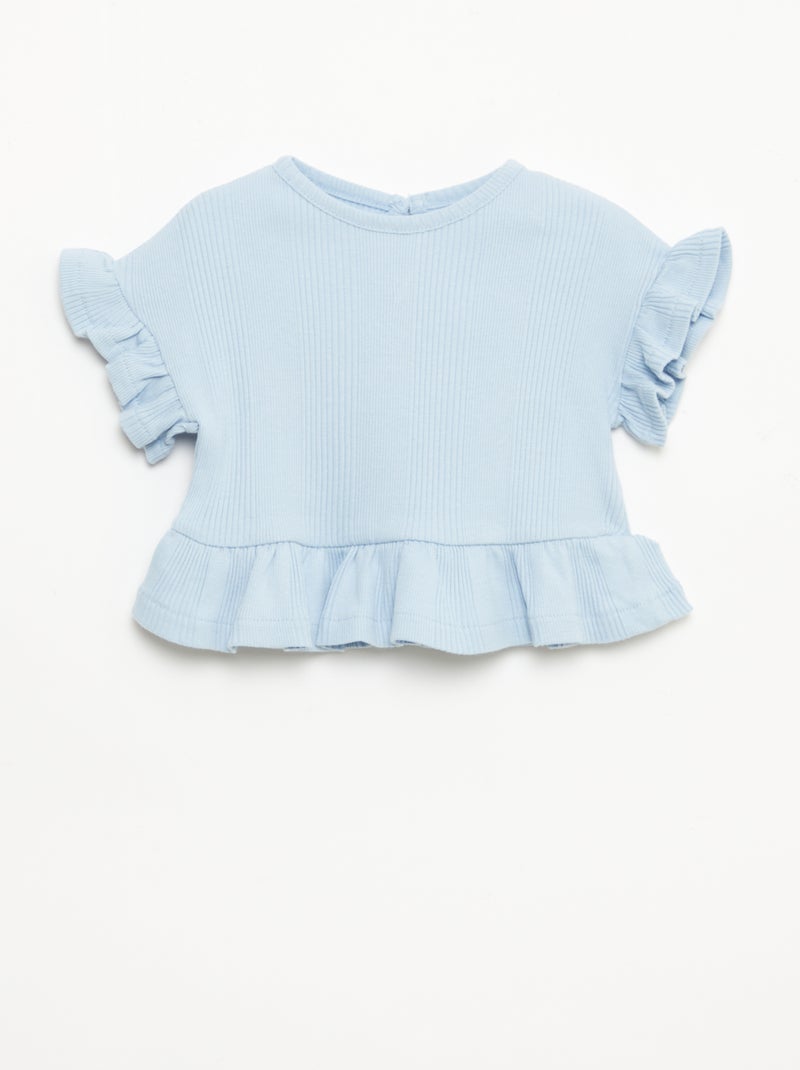 Tee-shirt côtelé avec bords volantés - Bleu
