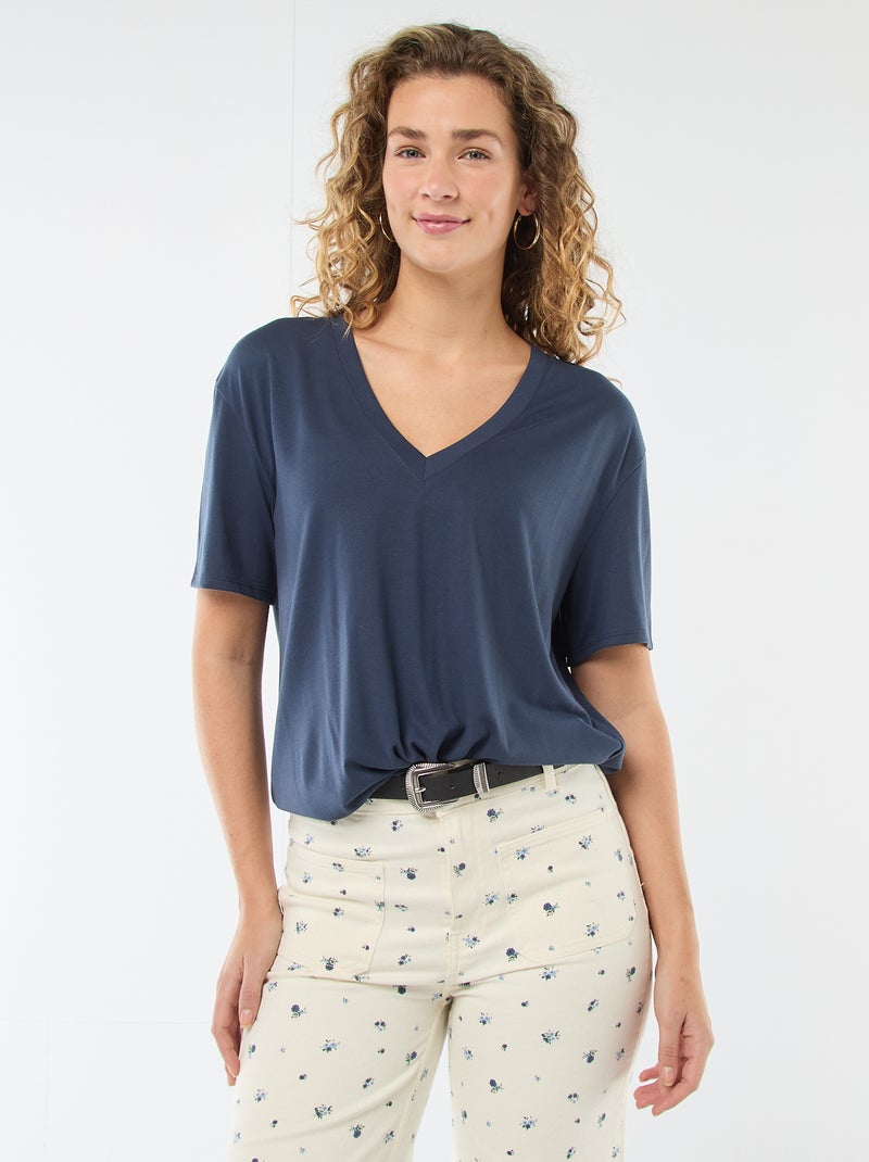 Tee-shirt manches courtes avec encolure en V - Bleu