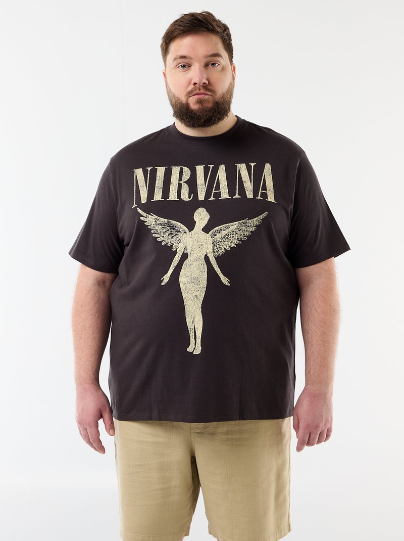 Tee-shirt 'Nirvana' à manches courtes imprimé recto/verso - Noir