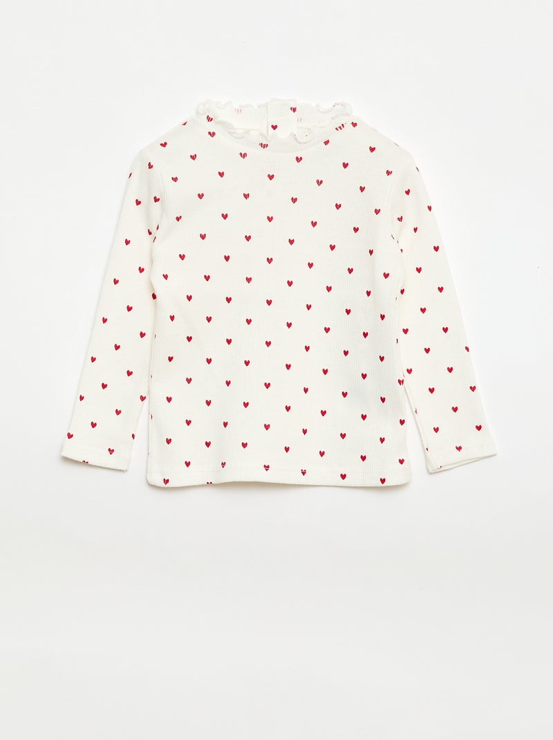 Tee-shirt rib col ondulé - Blanc