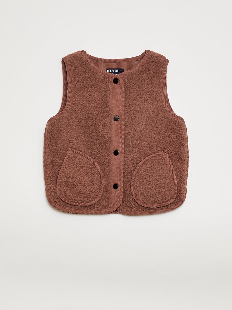 Veste effet moutonnée sans manches - Marron