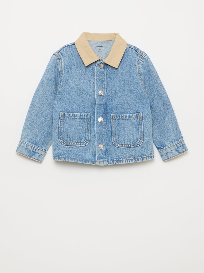Veste en denim avec col à pointes libres contrastant - Bleu