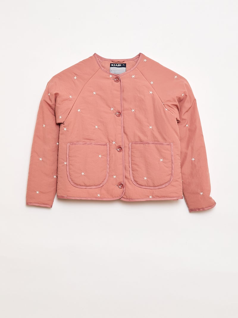 Veste matelassée avec motif brodé - Rose